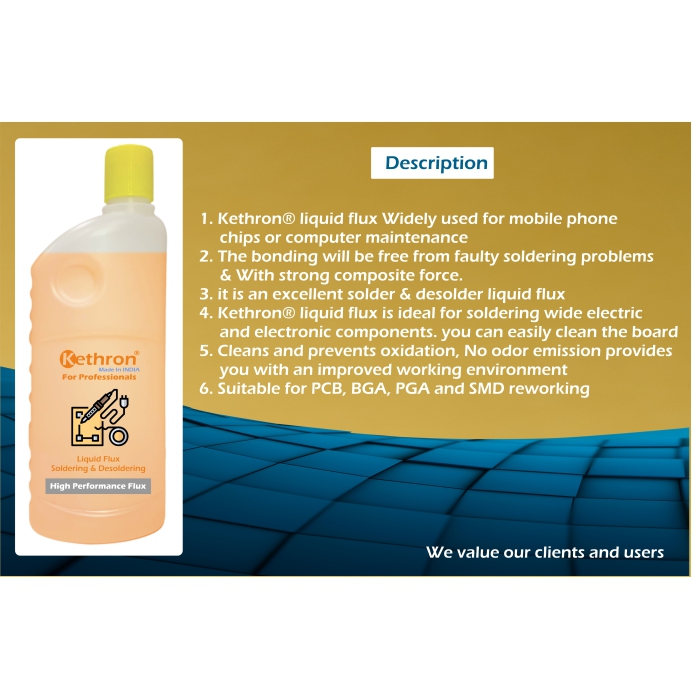 4. Kethron® liquid flux is ideal for soldering wide electric and electronic components. you can easily clean the board