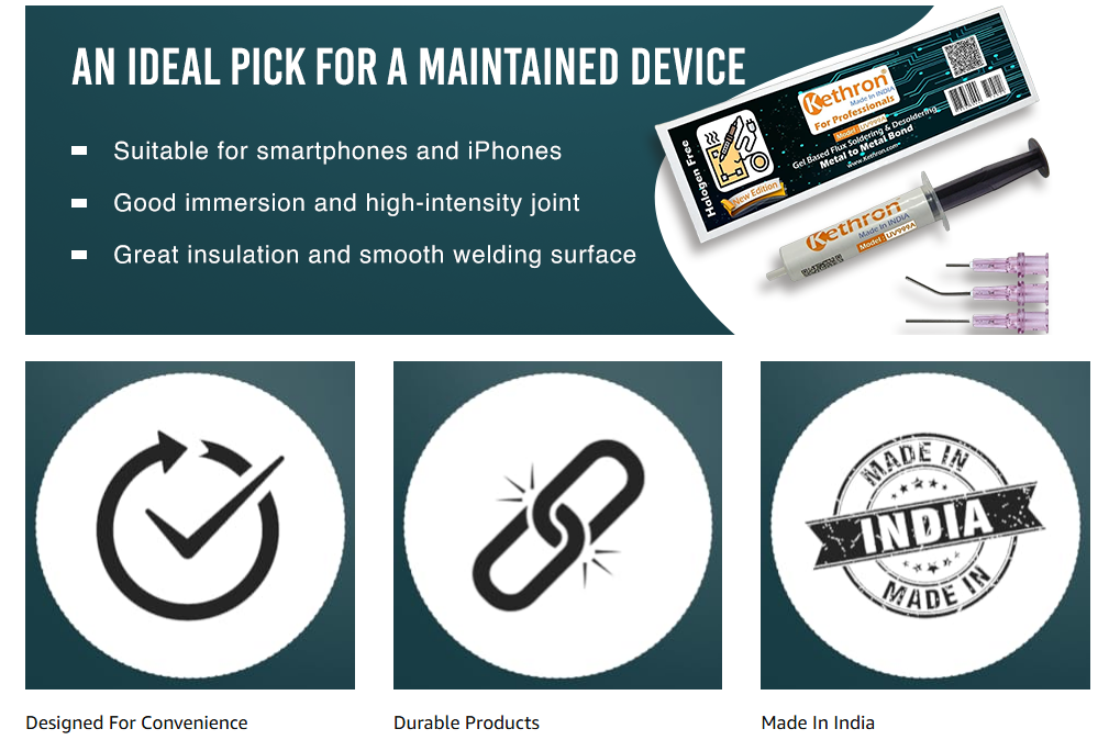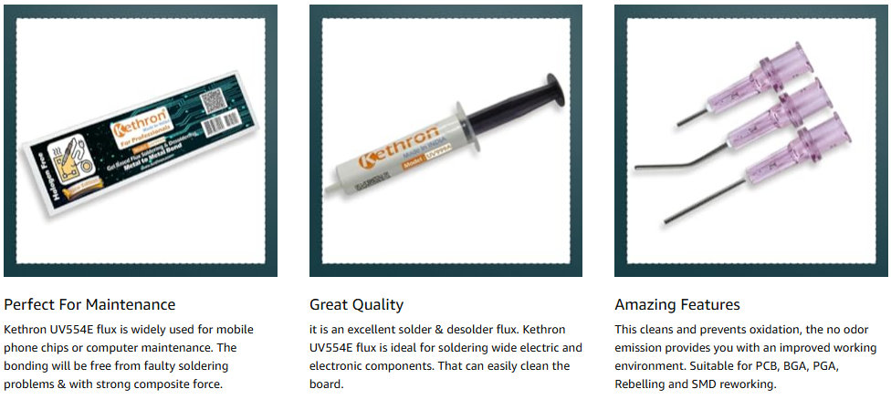 4. Kethron UV999A flux is ideal for soldering wide electric and electronic components. you can easily clean after use