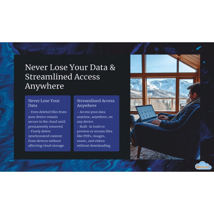 •Even deleted files from your device remain secure in the cloud until permanently removed.